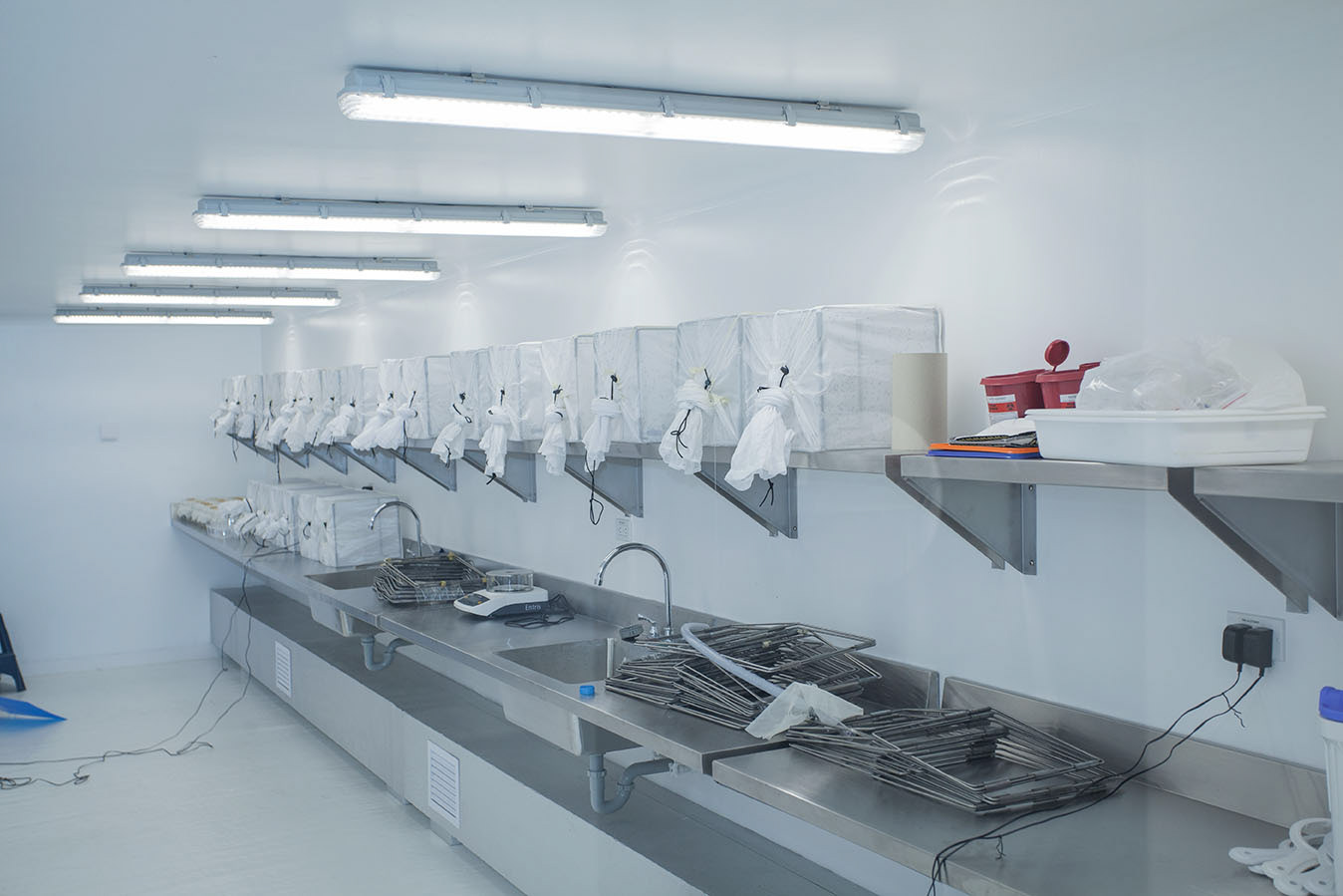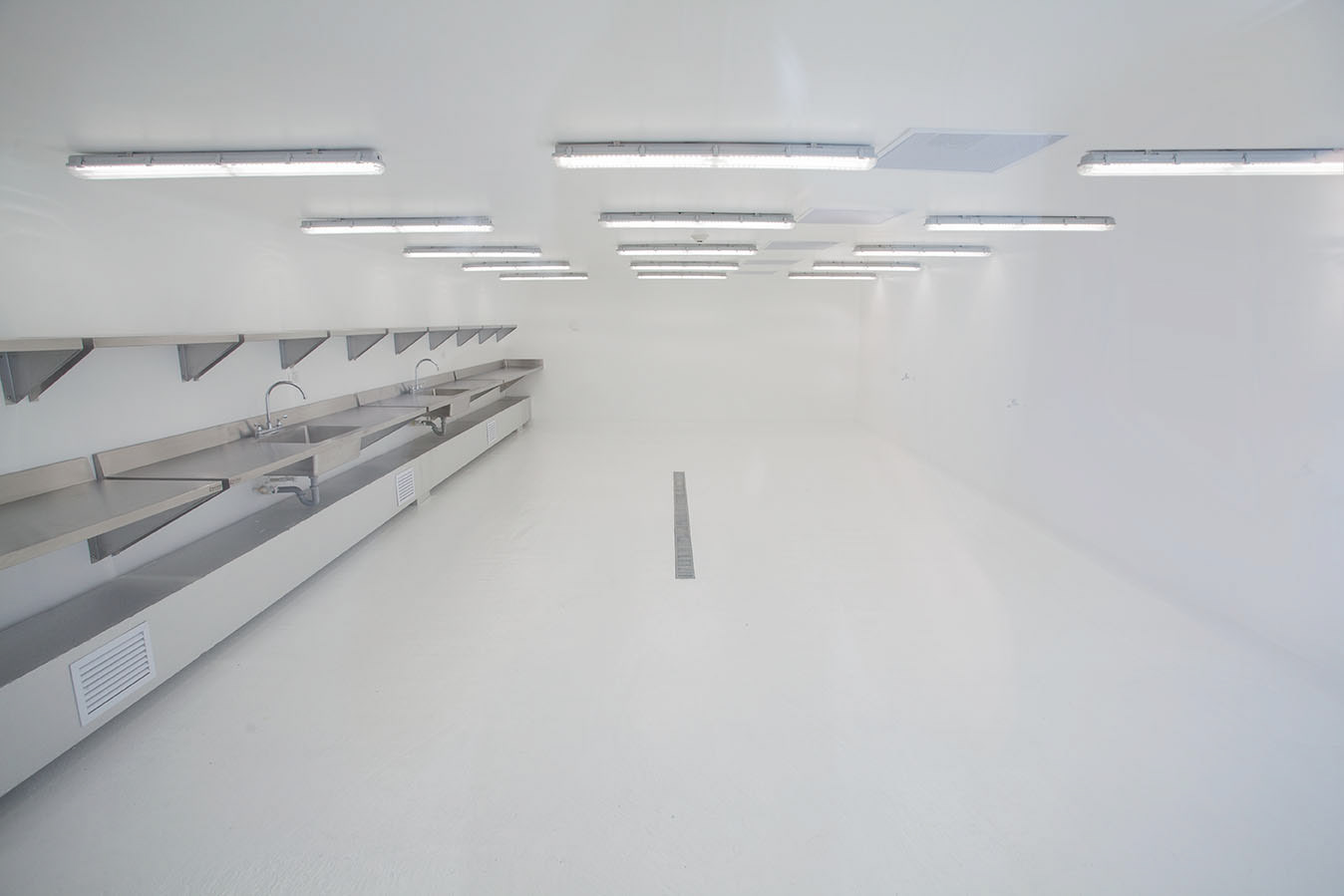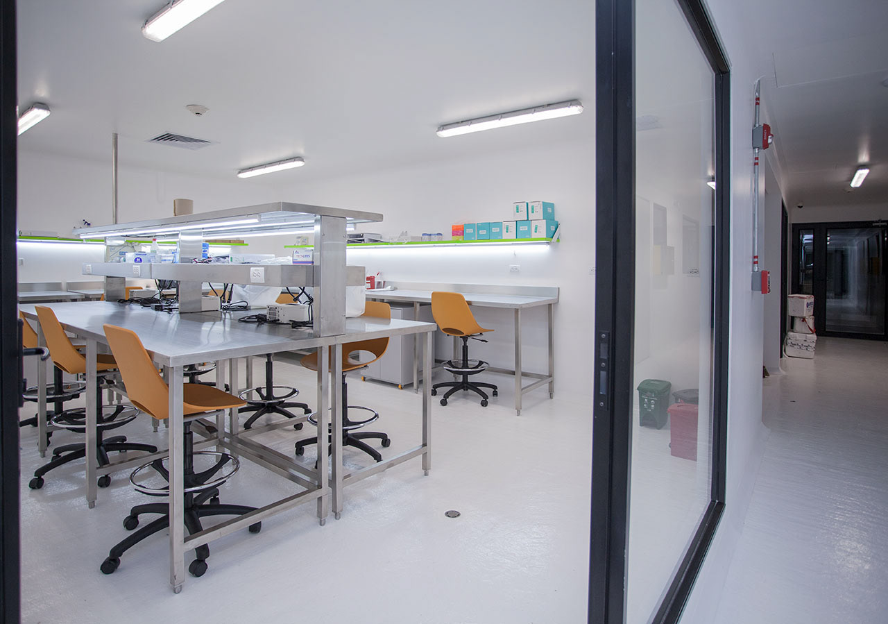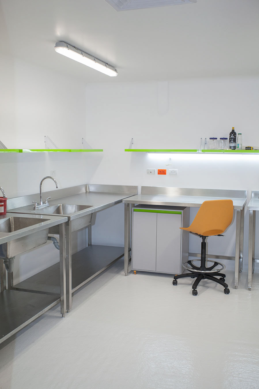 Los laboratorios y la cava de refrigeración del WMP son diseños pensados desde de la normativa y las buenas prácticas de manufactura para albergar investigaciones de alto nivel. Implementamos el uso de materiales de alto tráfico, pintura epóxicas, medias cañas, mesones de acero inoxidable y mobiliario ergonómico que cumpla con los parámetros de Seguridad y Salud en el Trabajo.